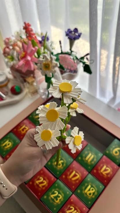 Dieser Adventskalender ist viel mehr als Schokolade! Jeden Tag baut ihr gemeinsam einen kleinen Mini-Blumenstrauß, der am Ende zu einem großen, wunderschönen Bouquet wird.Es ist Spiel, Kreativität und Familienzeit in einem – perfekt, um Erinnerungen zu schaffen, die bleiben. Kinder und Erwachsene werden gleichermaßen begeistert sein.Schenkt euren Liebsten freudige Momente, die weit über Weihnachten hinaus strahlen!
